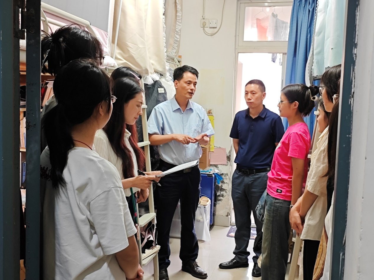 公司领导重点检查了宿舍内的消防设施配备、用电安全、卫生环境等情况,特别提醒同学们要严格遵守宿舍安全管理规定,严禁使用违规电器,切实增强安全防范意识,共同维护安全、整洁的住宿环境。同时,学院领导与同学们展开深入交流,详细询问了生活起居、学业进展等情况,并就学业规划、职业发展、毕业就业等问题进行了耐心解答。宋明江强调,作为马克思主义理论学科的研究生,要深读经典原著,夯实理论基础,鼓励同学们树立正确的学习目标,合理规划读研期间的科研与生活。