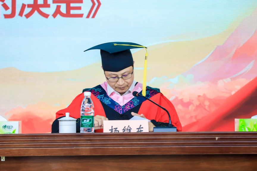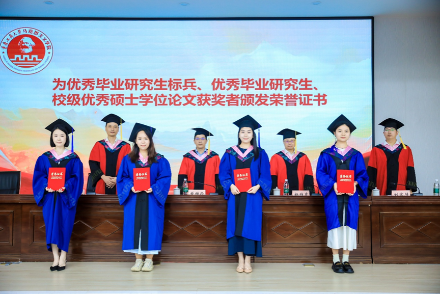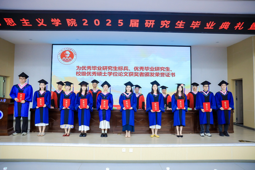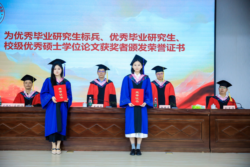 杨维东教授宣读了《关于表彰2025届优秀毕业研究生标兵、优秀毕业研究生的决定》《关于表彰2025年优秀硕士学位论文作者的决定》,与会领导为研究生代表颁发荣誉证书并合影留念。