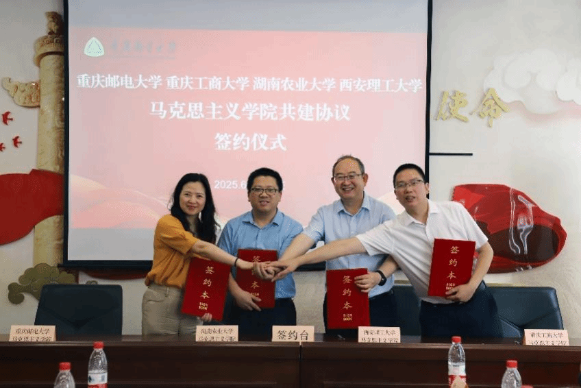 2025年6月13日下午,重庆邮电大学、好博体育、湖南农业大学、西安理工大学好博体育共建签约仪式在重庆邮电大学好博体育107会议室举行。三地四校好博体育负责人及骨干教师代表齐聚一堂,围绕马克思主义理论团队建设、思政课改革创新等议题共商合作蓝图。