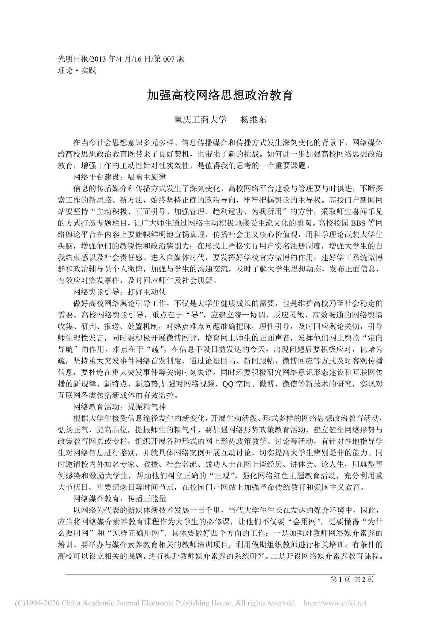 加强高校网络思想政治教育