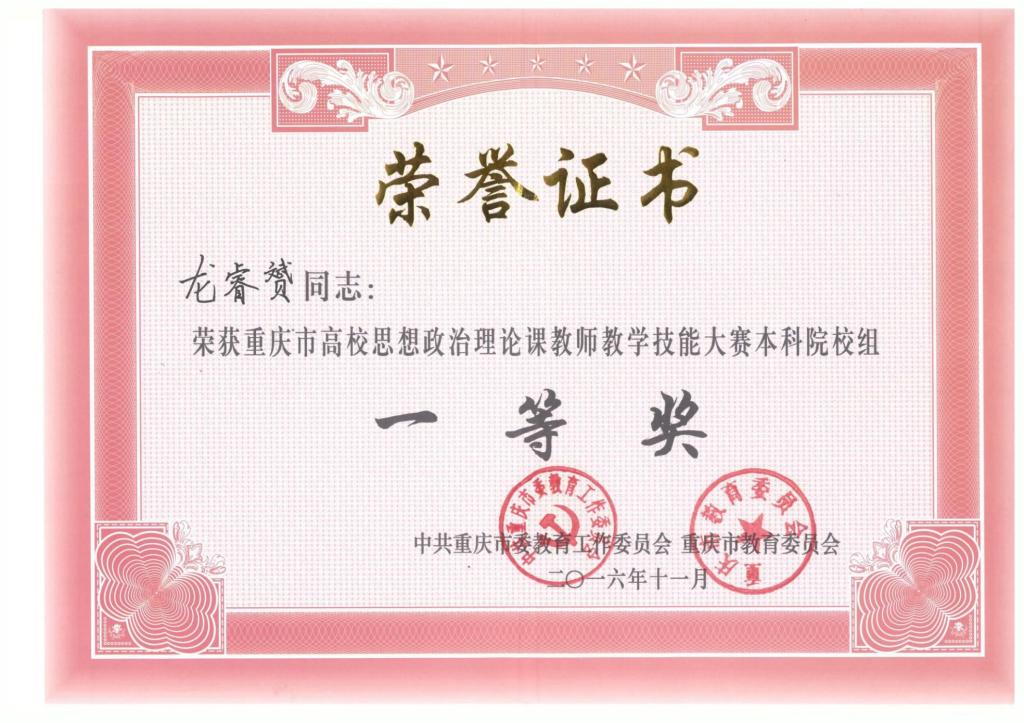 下一条:2018年重庆市高校青年教师教学竞赛一等奖