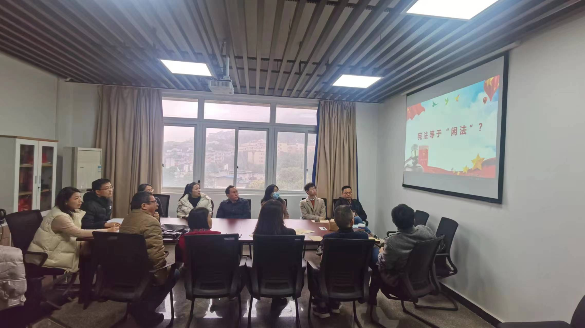 宪法是国家的根本法,是治国安邦的总章程,是公民权利的保障书。党的二十大报告指出:“全面贯彻实施宪法,是建设社会主义法治国家的首要任务和基础性工作。”学习宣传贯彻党的二十大精神,推动宪法全面贯彻实施是每一位公民的责任。2023年12月1日,在第十个国家宪法日即将到来之际,好博体育思想道德与法治教研部全体教师在慧智楼90910开展了本学期第三次“立德垂范”主题教研活动,活动由支部书记张丽主持。