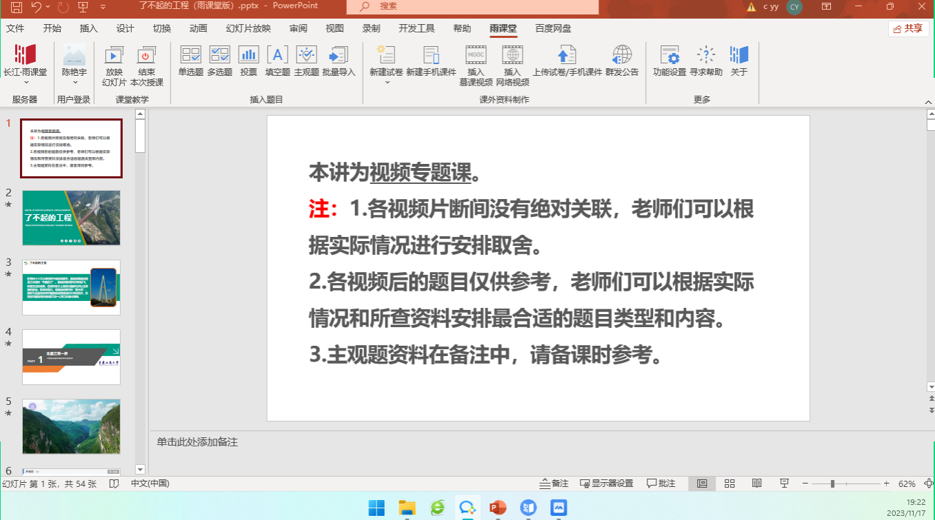 本次备课会的主要内容是本学期形势与政策课第五讲——《了不起的工程》。陈艳宇老师首先对视频内容和PPT制作进行了简要介绍,提醒老师们在使用视频材料和课件进行授课的时候需要特别注意的问题,并强调了因为教室设备、软件和教师习惯等因素,任课老师应合理选择适当的PPT版本进行授课,另须注意根据实际授课情况对视频内容进行取舍。