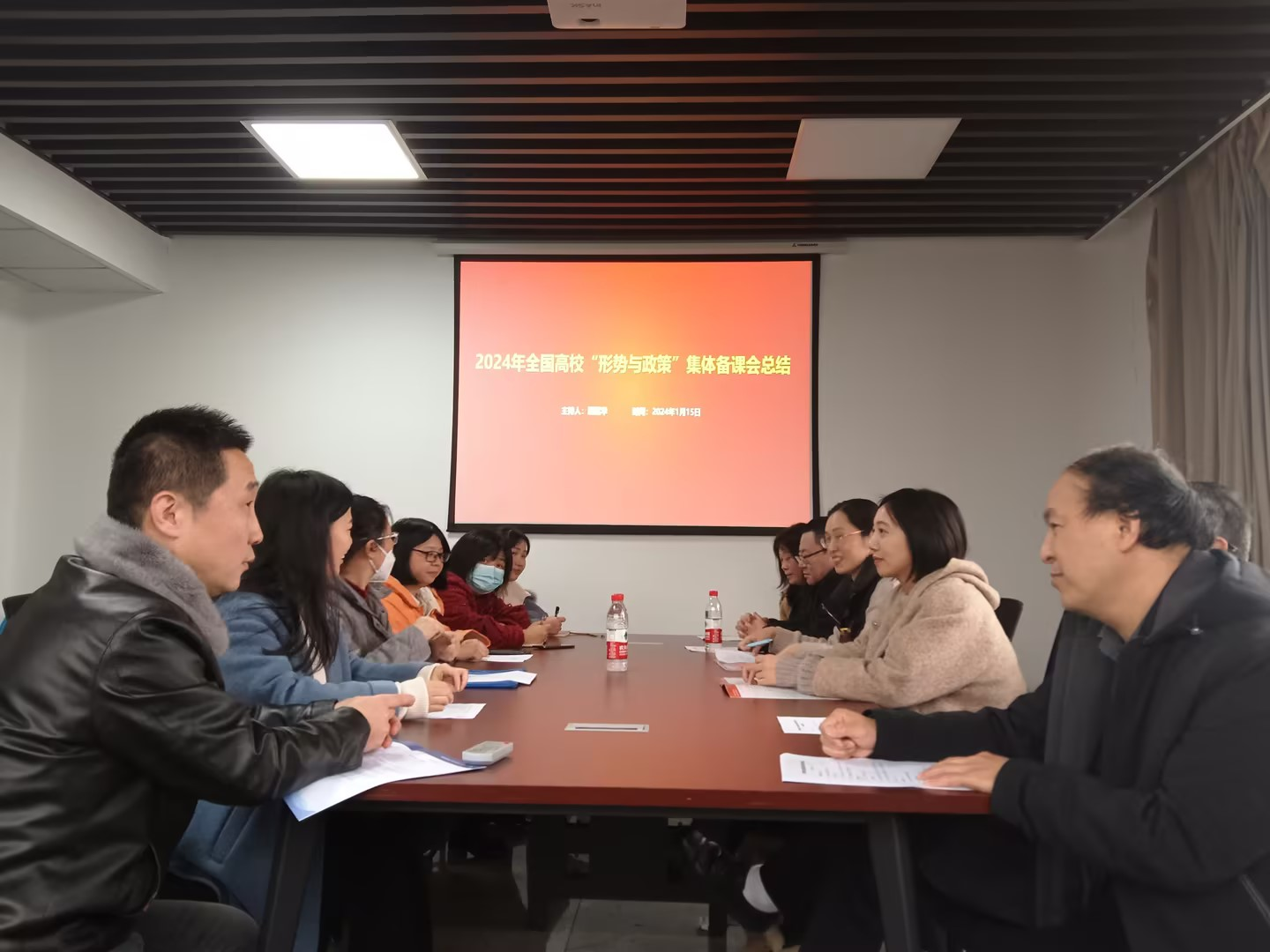 1月15日,“形势与政策”教研部在90911会议室举行了系列教研活动的第一场:全国高校“形势与政策”集体备课会总结。会议由参加全国校“形势与政策”集体备课会市委党校集中学习的屈莲华老师主持,专兼职教师十余人参加了本次会议。屈莲华老师介绍了全国高校“形势与政策”集体备课会情况。她表示,“形势与政策”教师要加强学习、积极实践,夯实理论功底、克服“本领恐慌”,把道理讲深讲透讲活,引导新时代老员工增进政治认同、思想认同、理论认同、情感认同。